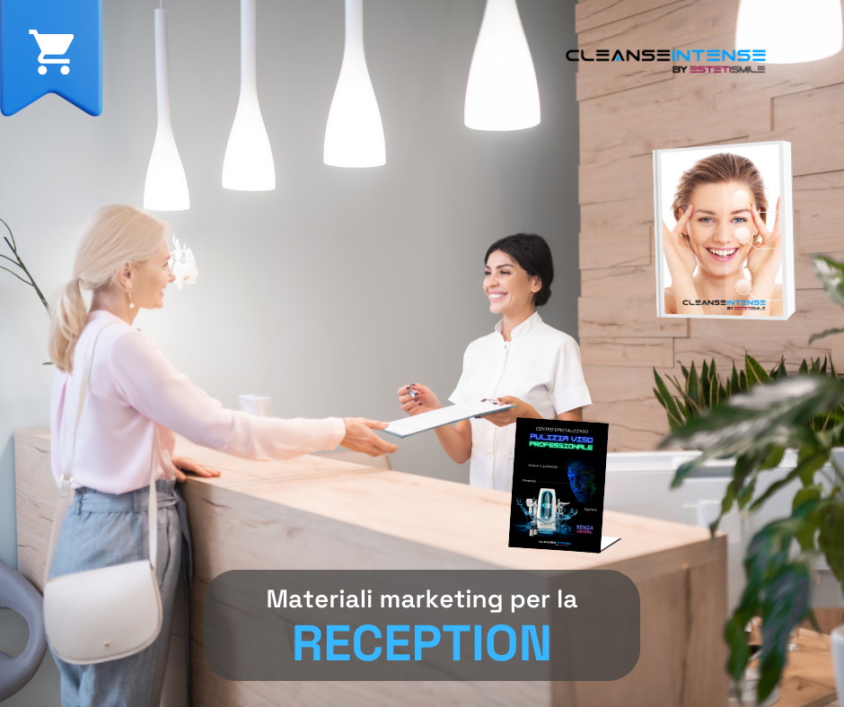 Display da banco in Acrilico trasparente 2 mm, con locandina "Centro Specializzato Pulizia Viso Professionale" formato A4 (21x30 cm).