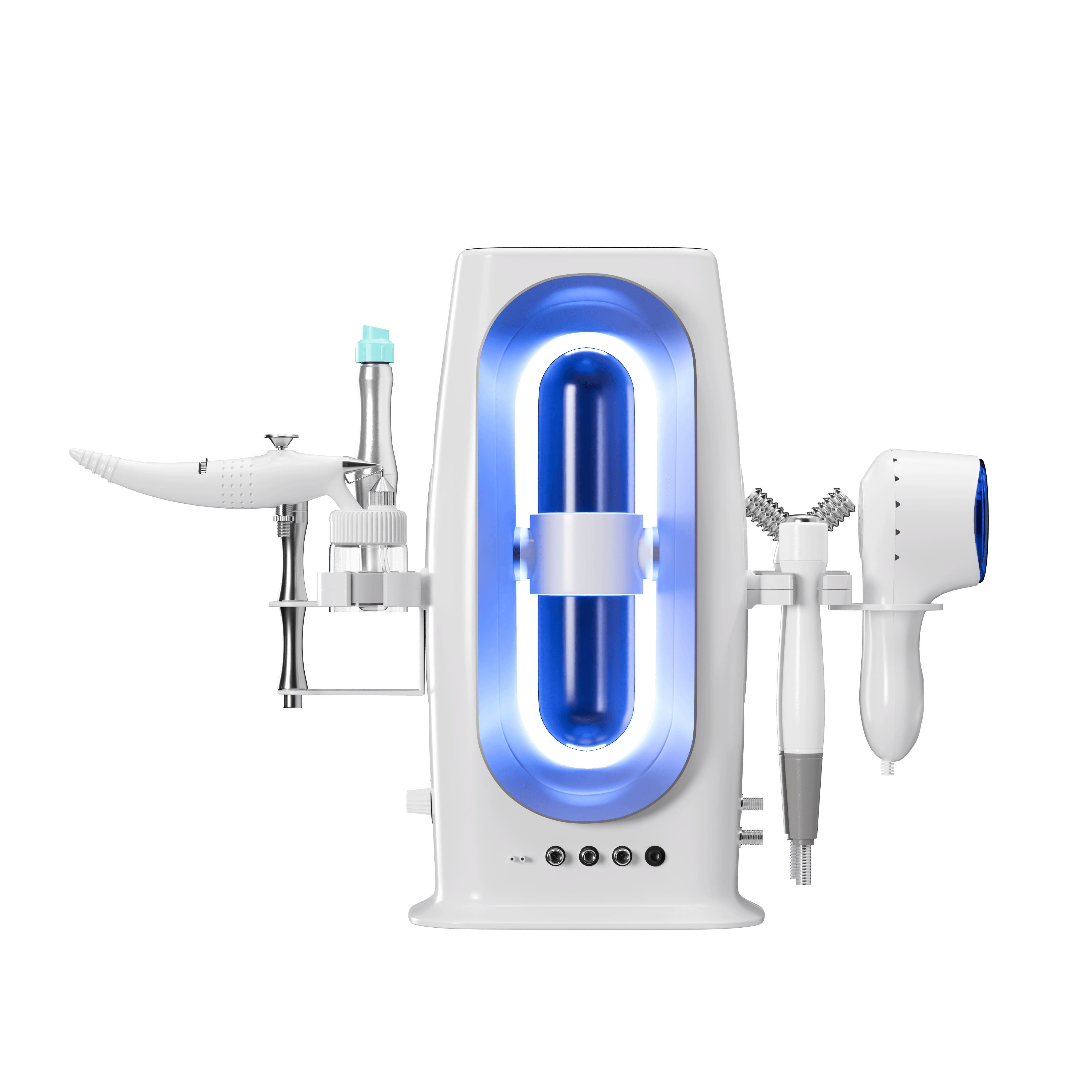 - 6 manipoli (micro-dermoabrasione, idropeeling, ossigeno, anti-age occhi, massaggio caldo/freddo, microcorrenti)